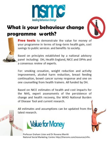 This is the poster my friend Dr Rowena Merritt and I used to market the Behaviour Change Value for Money Tools we developed with the National Social Marketing Centre. On the following page you will find the training material and evaluation tools we provide. More than 250 users have been trained to apply systematic value for money analysis using these tools.